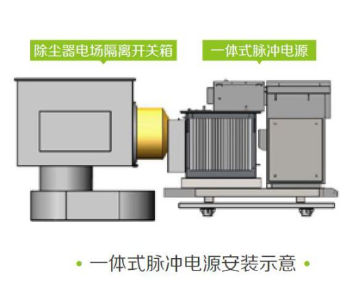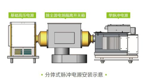脉冲源设计为独立机柜,与高频电源、三相电源、工频电源叠加,实现复合电压输出。该方式下,用户可利用原电除尘器电场电源,减少成本费用。