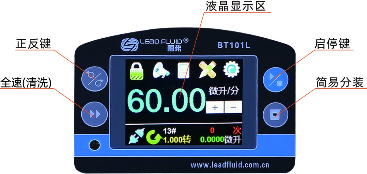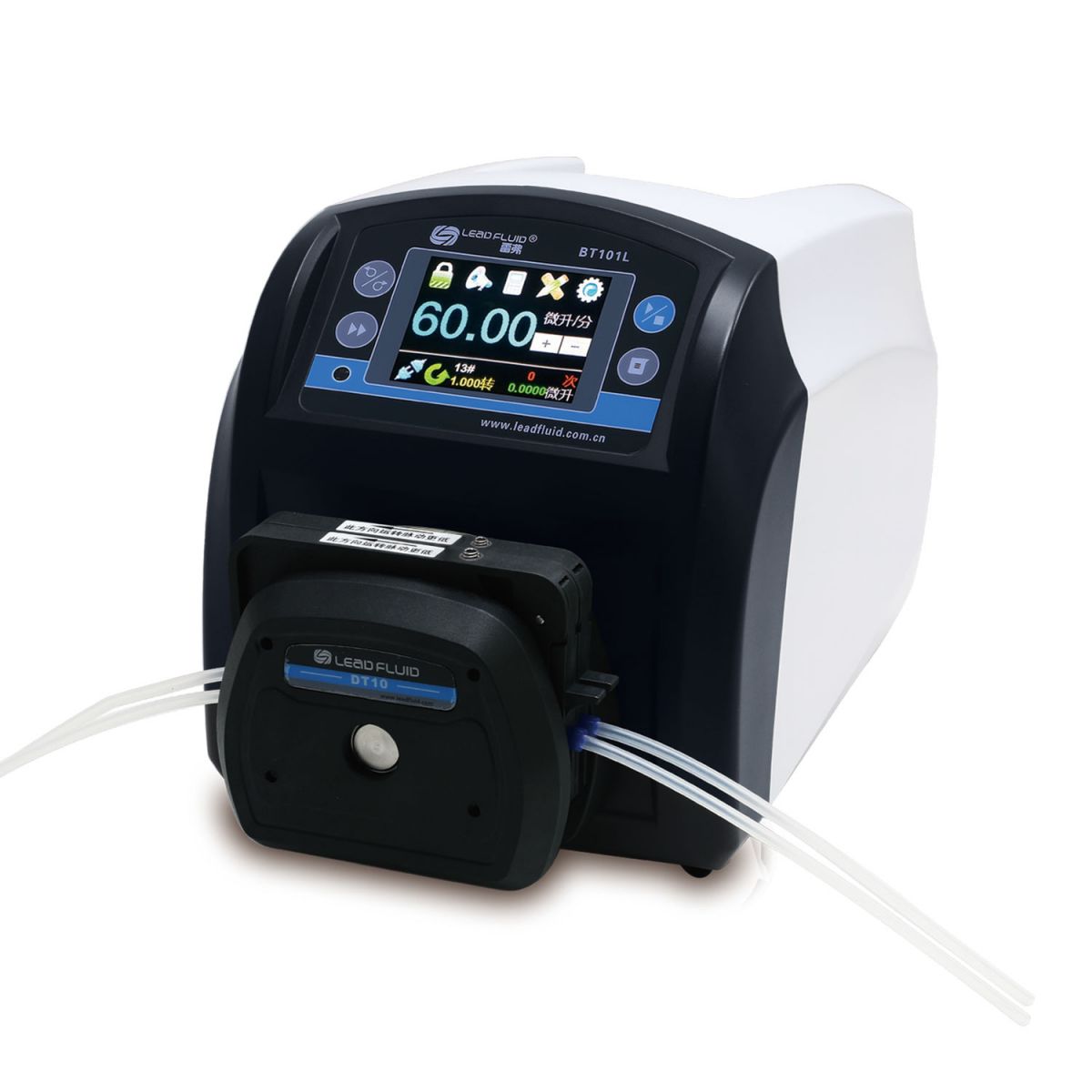 · BT101L流量智能型蠕动泵可以安装多种泵头,实现不同泵头与驱动器组合。