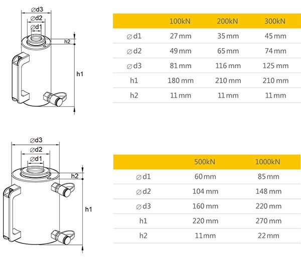 | 油缸中心孔 | 27mm | 34mm | 45mm | 60mm | 75mm | 86/95mm | |