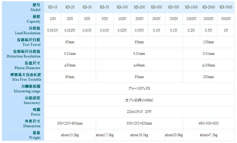SD系列电子数显弹簧拉压试验机是测试拉伸、压缩弹簧的变形量和负荷关系特性的专用仪器。适用于拉伸、压缩弹簧在一定工作长度下的工作负荷的测试,也可用于橡胶、簧片等弹性器件的弹力负荷测试。