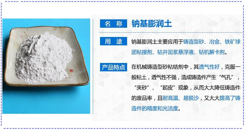 膨润土的特殊微细晶体结构决定其有许多优良特性,如高分散性、悬浮性、膨润性、粘结性、吸附性、阳离子交换性等。