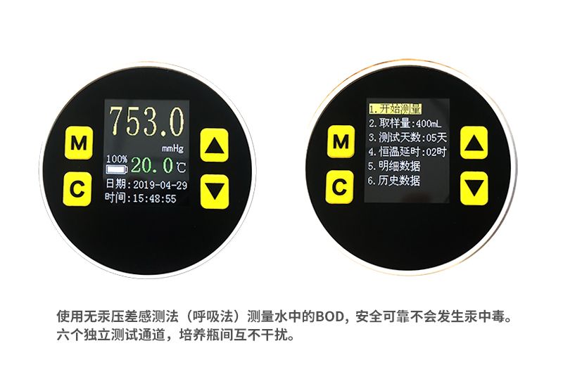 浓度直读:可以测量1-6个样品无需换算、直接显示BOD浓度值。