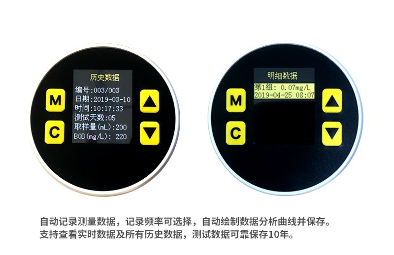 数据记录:可随时查看当前实验数据,以及五日生化需氧量历史数据。