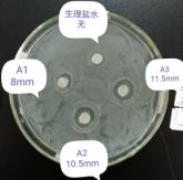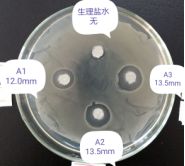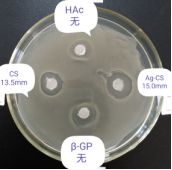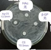 对于金黄色葡萄球菌,生理盐水、β-GP、稀醋酸都没有抑菌效果,而CS、Ag-CS、Ag-CS/β-GP都有一定的抑菌作用,且随着凝胶溶液的银含量增加,抑菌作用越强。