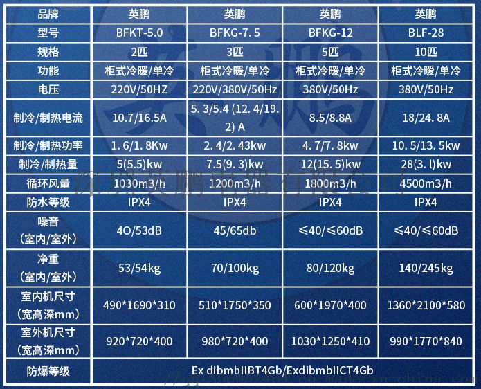 全系防爆空调系列防爆标志为Ex d ib mbⅡBT4