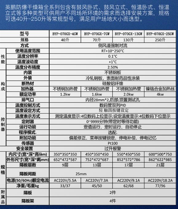 4、防爆干燥箱的箱内加热恒温系统采用了防爆电加热器及防爆风机。