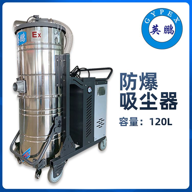 英鹏防爆吸尘器系列采用二级粉尘区域防爆设计,防护等级IP56,防爆等级Ex d ⅡB T4 Gb。