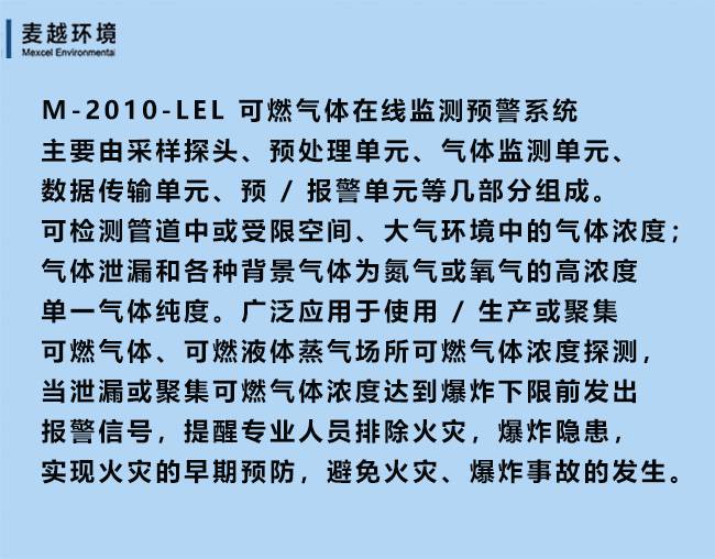可在线监测燃烧法有机废气处理设备进气口有机可燃气体的浓度,实时反馈有机可燃气体浓度变化,并将检测到的气体浓度含量以4-20mA的电流信号提供给用户于实现系统工艺自动控制。该系统采用气动泵取样,仪表采用防爆设计,可设置报警点,当废气浓度达到设定的数值时,就会发出声光报警,并联动风机,防止废气治理设备发生爆炸事故。焚烧炉LEL可燃气浓度在线监测仪可广泛应用于RTO处理前端可燃气体浓度的监测。