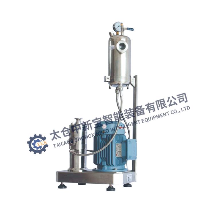 采取直立式设计,由1-3个工作腔组成,在马达的高速驱动下,物料在转子定子之间狭窄间隙中高速运动,形成紊流,物料受到更强液力剪切、离心挤压、高速切割、撞击和研磨等综合作用,从而达到乳化、乳化、破碎的效果。被加工的物料本身和物理性质和工作腔的数量以及控制物料在工作腔中停留的时间决定物料粒径的分布范围及均化、细化的效果和产量大小。