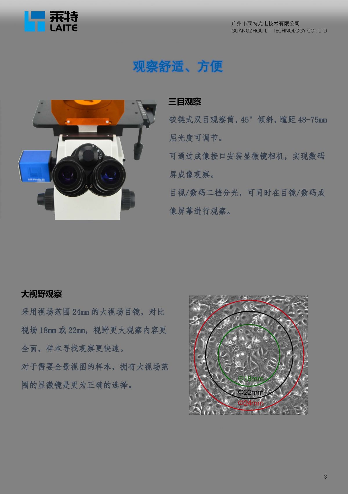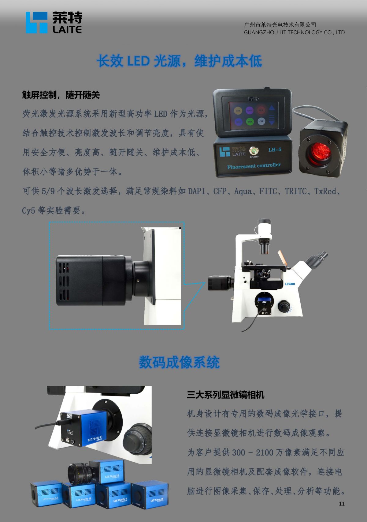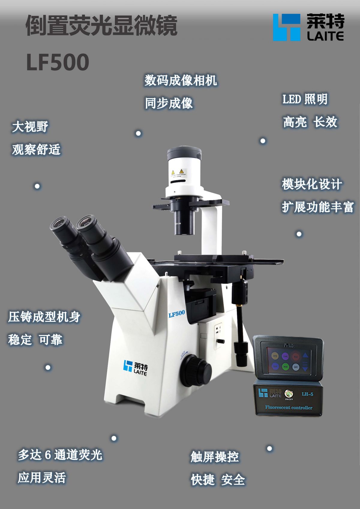 LF500高级倒置荧光显微镜 三大系列显微镜相机机身设计有专用的数码成像光学接口,提供连接显微镜相机进行数码成像观察。为客户提供300 - 2100万像素满足不同应用的显微镜相机及配套成像软件,连接电脑进行图像采集、保存、处理、分析等功能。
