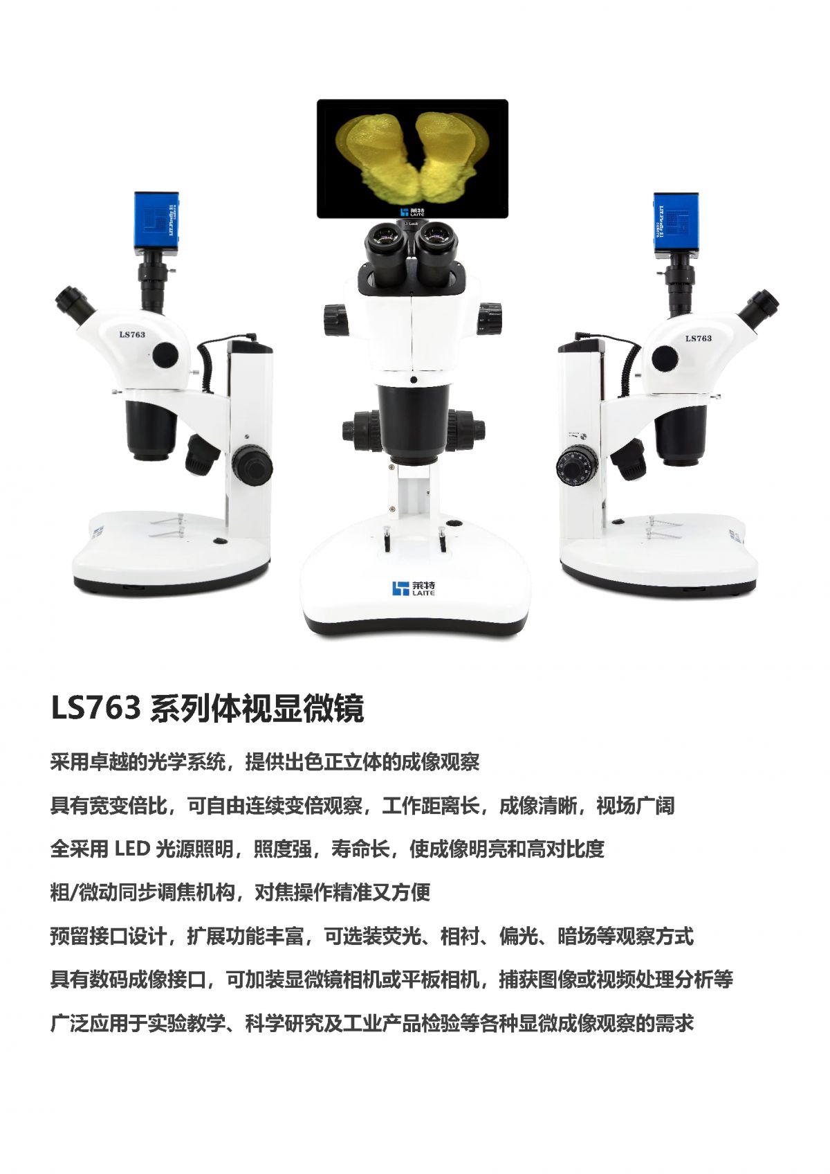 广泛应用于实验教学、科学研究及工业产品检验等各种显微成像观察的需求