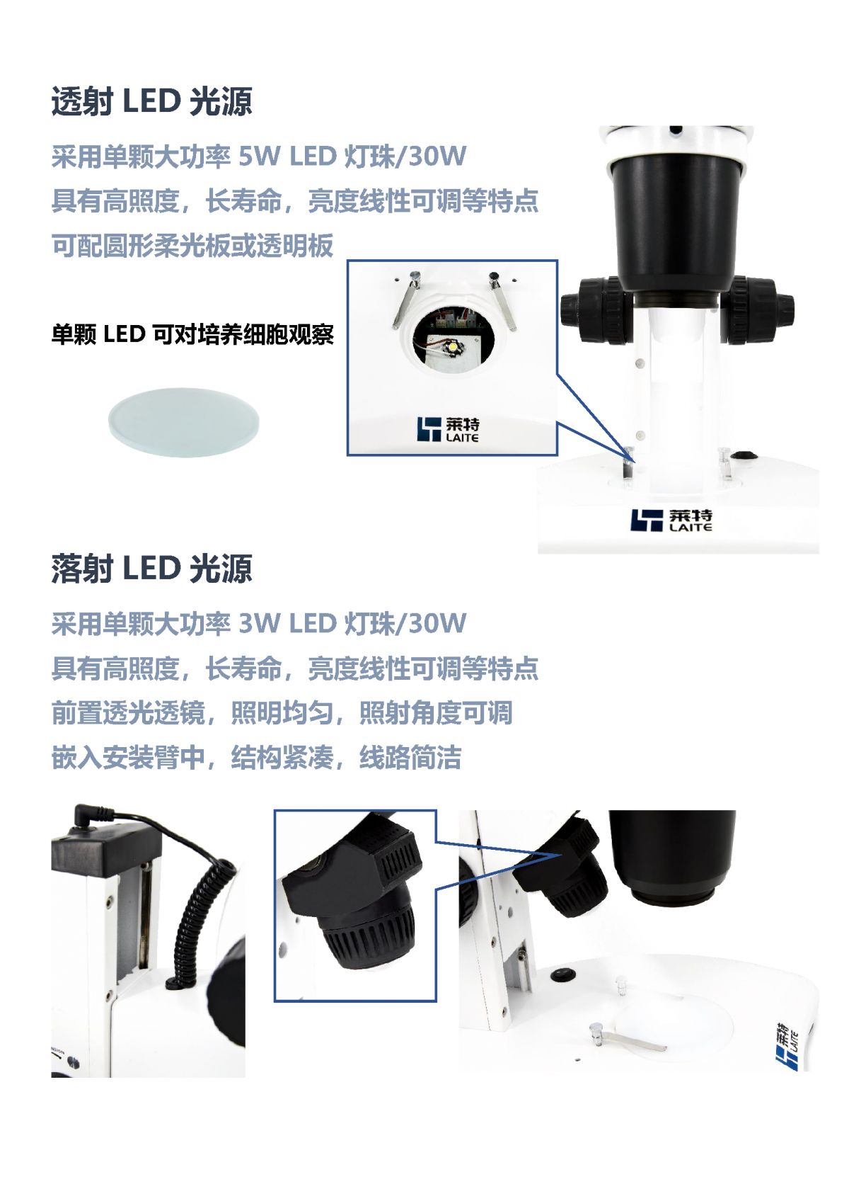 全采用LED光源照明,照度强,寿命长,使成像明亮和高对比度