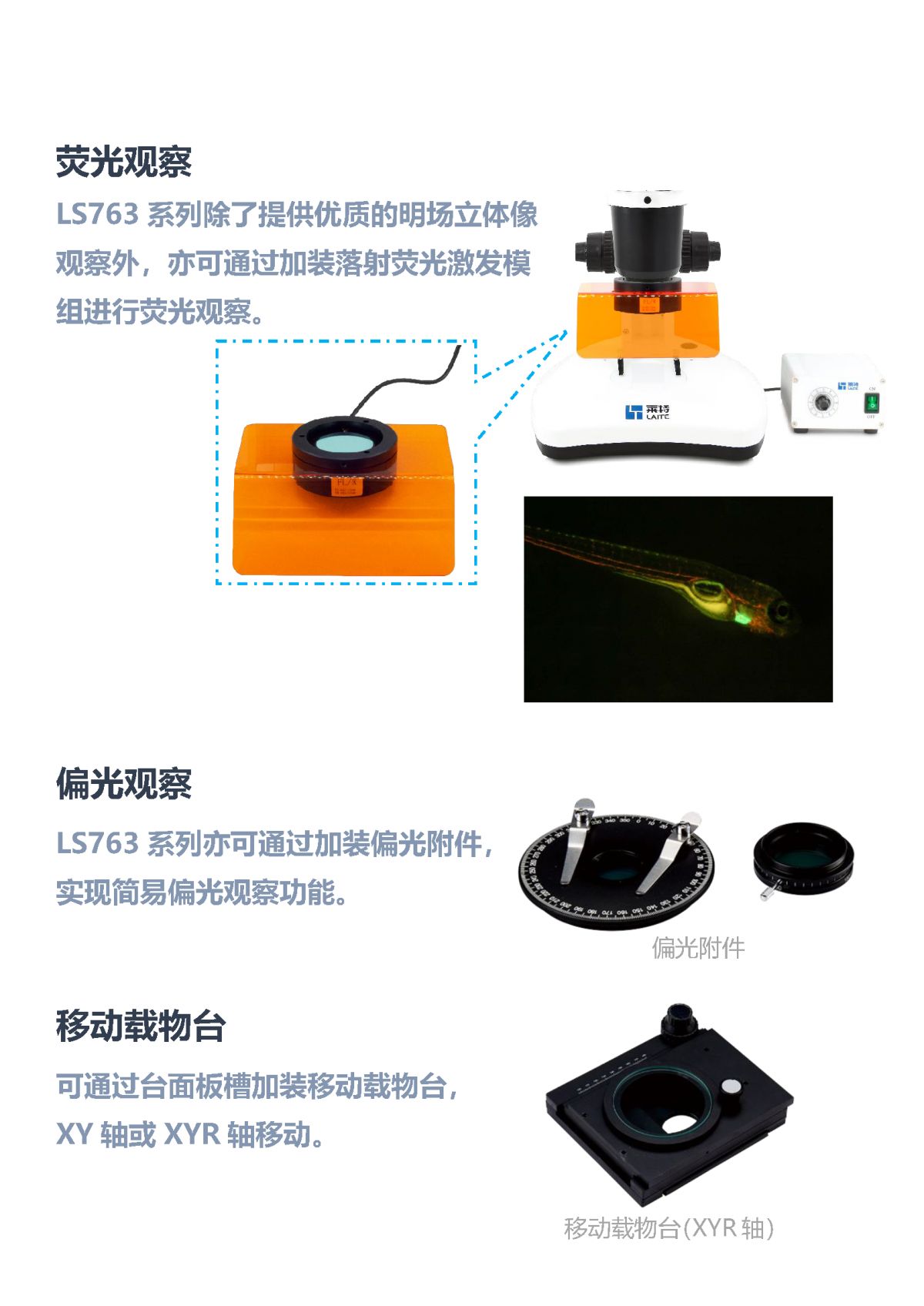 移动载物台 | 可选:XY移动或XYR移动旋转载物台 |