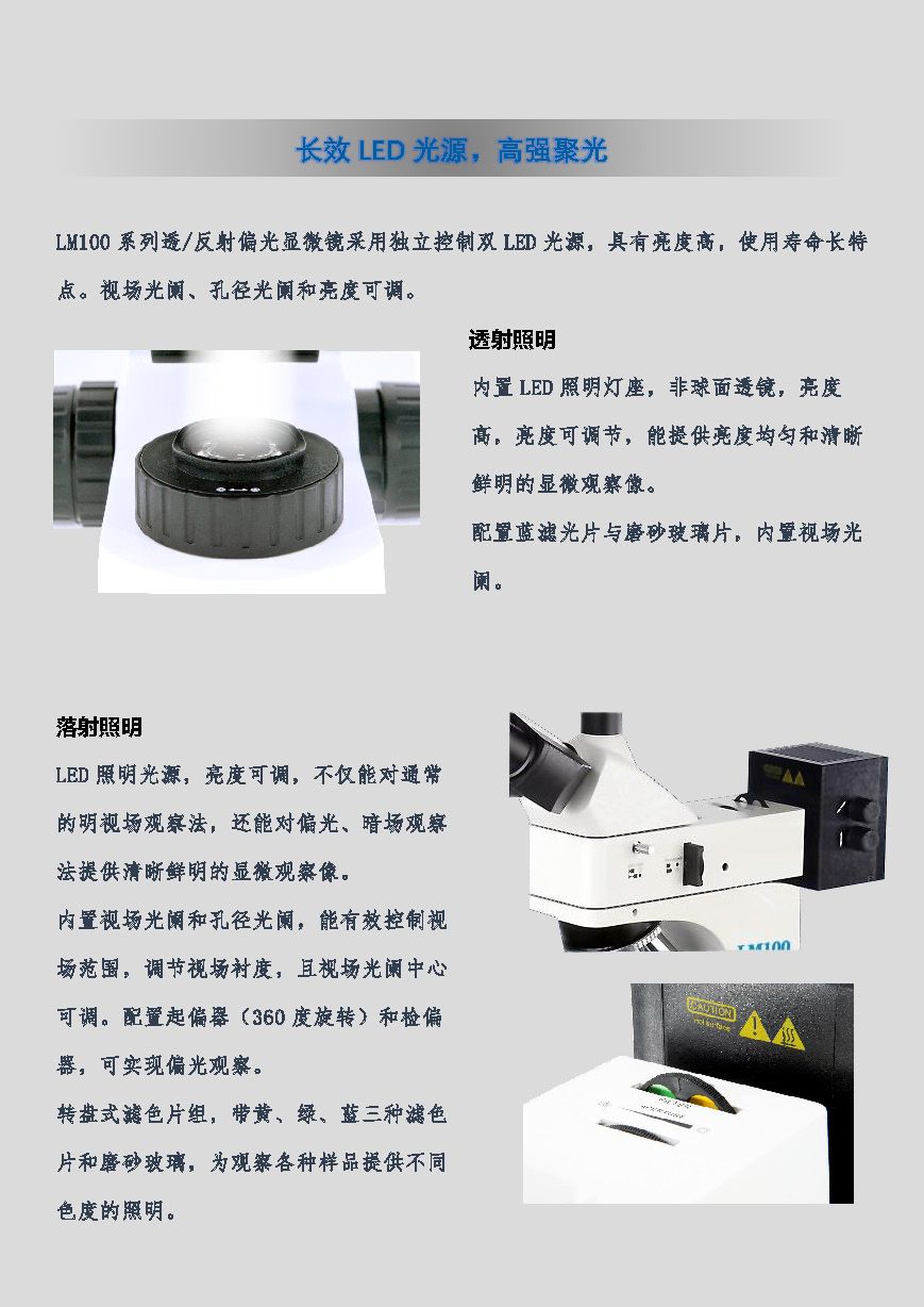 Ø LED透射/反射双光源照明,使用寿命长,亮度高
