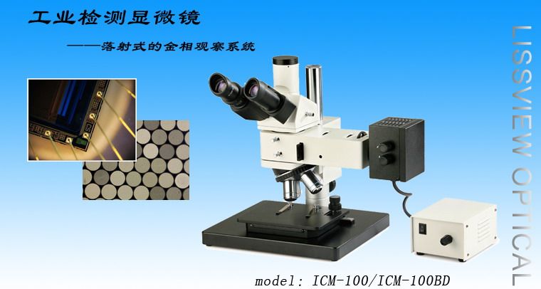 ICM-100/100BD工业检测显微镜适用于对工件表面的组织结构与几何形态进行显微观察。采用优良的无限远光学系统与模块化功能设计理念,可以方便升级系统,实现偏光观察、暗场观察等功能,导柱升降装置,可以快速调整工作台与物镜之间的距离,适用于不同厚度工件检测。机械移动式载物平台可有效定位工件观察部位。调焦机构采用圆柱滚子导向传动,机构升降平稳。产品适用于精密零件,集成电路,包装材料等产品检测。
