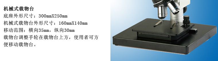 | 机械式载物台外形尺寸:185mmX140mm,移动范围:横向35mm,纵向:30mm | |||