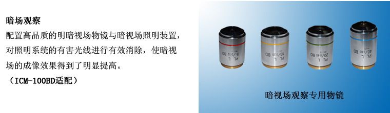 | ICM-100BD(配明/暗场物镜) | PL L5X/0.12 BD 工作距离:8.05mm | ||