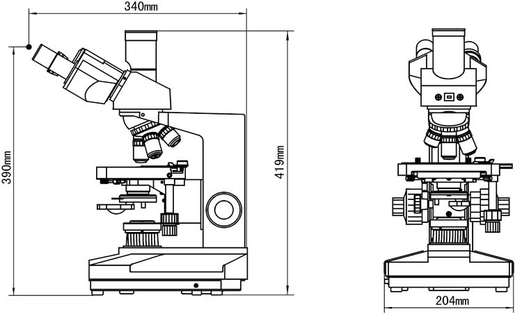 ▲ 采用柯勒照明方式,6V 20W卤素灯照明,亮度可调.