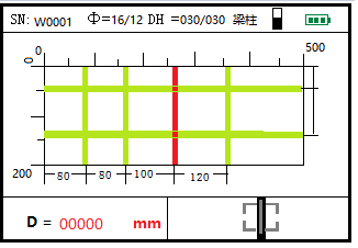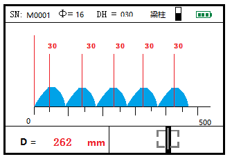 4.可实时显示钢筋间的位置。钢筋扫描中,可以实时显示钢筋之间的间距和保护层厚度。