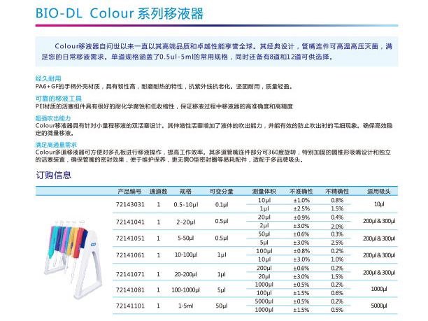 Colour彩色移液器产品特点: