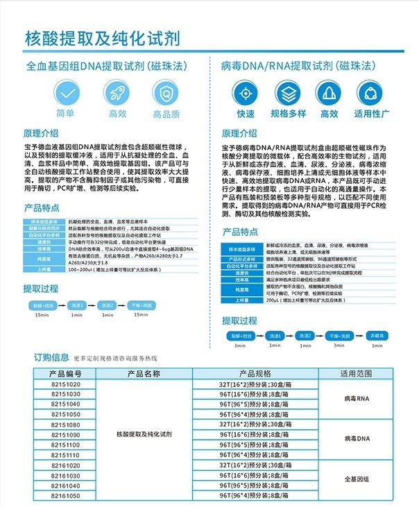 全自动化核酸提取,0.5-1小时/次,每次多可提取32个样品,核酸得率高。