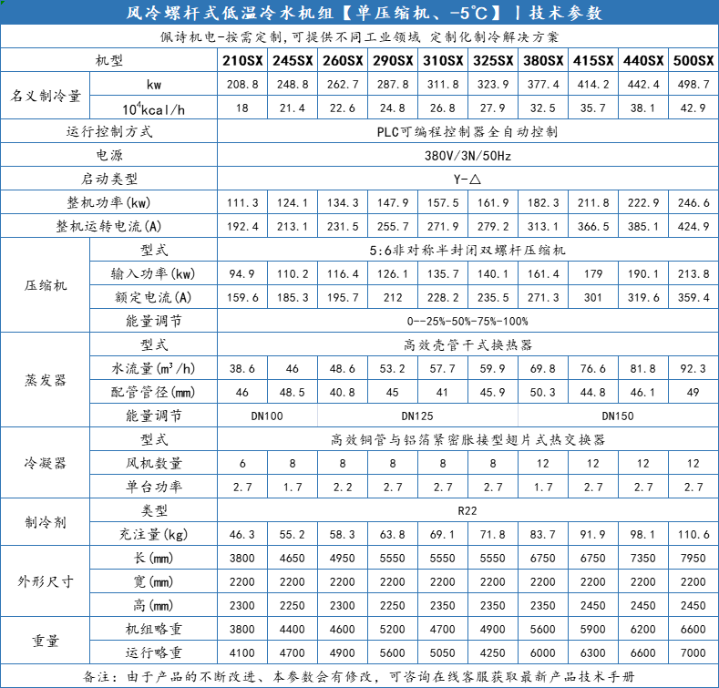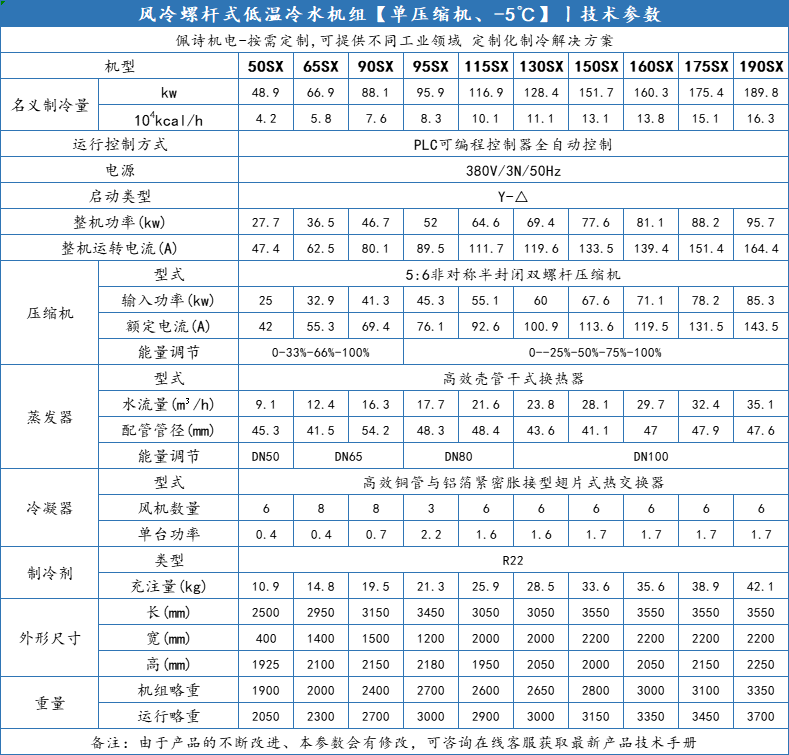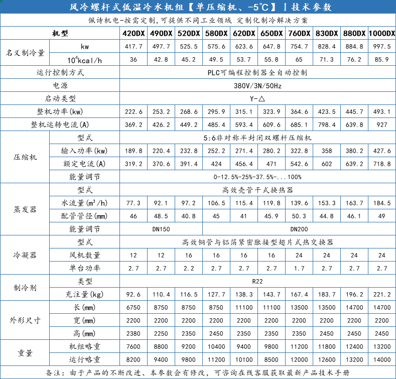 【1】制冷工况:冷冻水进/出水温度0℃/5℃;环境干球湿度35℃