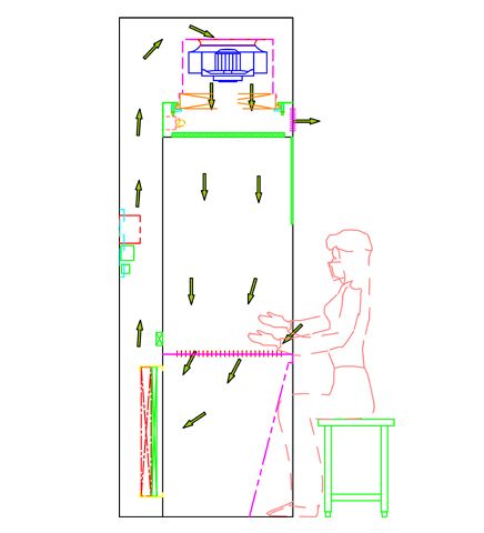 | DBT-800型负压称量台采用垂直单向流的气流形式,回风先要通过初效过滤器进行预过滤,将气流中的大颗粒粉尘粒子处理掉,经过预处理后的空气,再经过中效过滤器进行二次过滤,以起到充分保护高效过滤器的作用。在离心风机提供的压力下,通过高效过滤器,使之达到洁净要求。洁净气流被送至送风箱体内,90%通过均流送风网板,形成均匀的垂直送风气流,10%则通过风量调节板,排出设备。所有气流均经过高效过滤器处理,所以送风,排风均不带残余粉尘,避免了二次污染。由于在工作区域形成稳定的单向流,在此区域中散发的粉尘,会在单向气流的影响下,随着气流而被初、中效过滤器所捕集。设备带有10%的排风,从而形成相对与外部环境的负压,从一定程度上保证了此区域内的粉尘不会扩散至室外,起到保护外部环境的作用。 | ![]() |