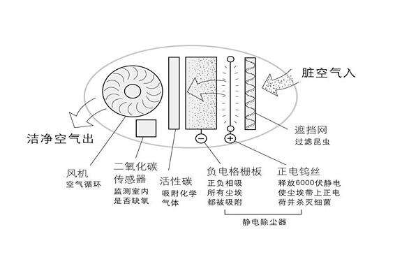内置高效电子除尘器同时产生一定浓度负氧离子,改善空气新鲜度