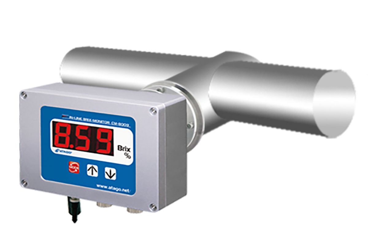 CM-800α 在线折光仪用于实时连监测生产线液体的可溶性固含量(Brix值)。