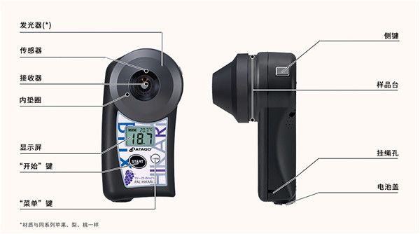 ATAGO(爱拓)水果无损糖度计——PAL-HIKARi系列,采用红外原理,通过把光线从水果表面射向水果内部,根据反射到传感器的时间来推算果实的糖度(Brix值)。