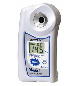 ATAGO(爱拓)便携式数显氧化镁折射计/卤水折射计,又称氯化镁浓度计 PAL-43S,适用于测定各种卤水或者卤料的盐卤浓度以及调节卤料品的盐度。如卤水豆干,卤制品检测。卤制品的配制卤水时浓度非常重要,直接影响卤水特有的风味,数显卤水折射计能快速测定含盐(氯化镁)溶液百分比浓度或折射率。