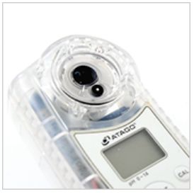 | 清洗方便 为防止样品污染而导致测量的pH值不稳定,PAL-pH 采用IP65防水功能,可针对棱镜部分用水冲洗。 |