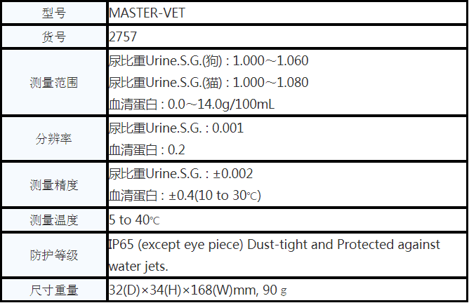 MASTER-VET 刻度式犬猫尿比重折射仪(双标度)