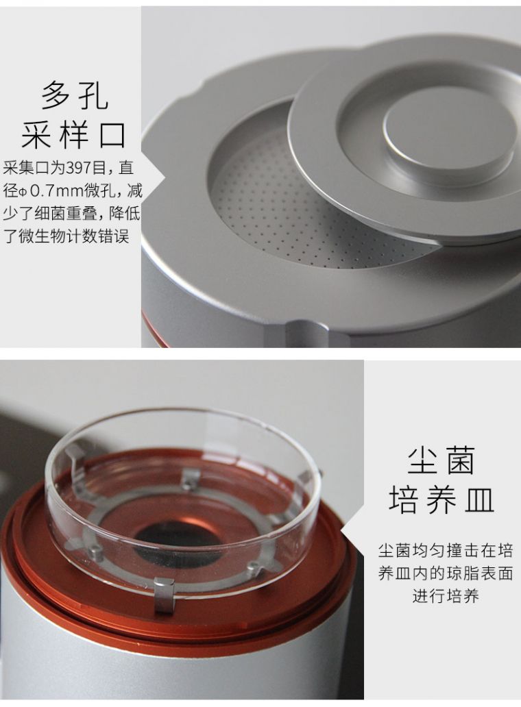 1. 采样头为无数微孔,使微均匀分布在琼脂表面,减少了尘菌重叠,降低了微计数误差。