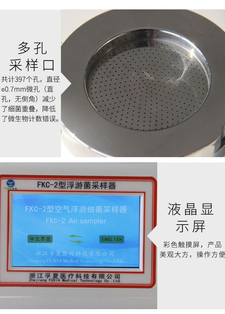 ·采样头为316材质,共计397个孔,直径φ0.7mm微孔(直孔,无倒角),减少了细菌重叠,降低了微计数错误。