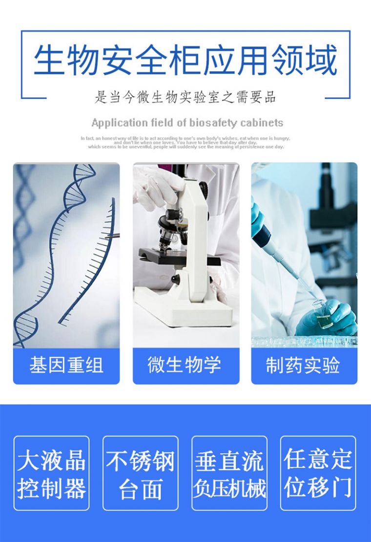 2 、上下移动玻璃门,可任意定位,易于操作,并能完全关闭以便杀菌,定位高度限位报警提示。