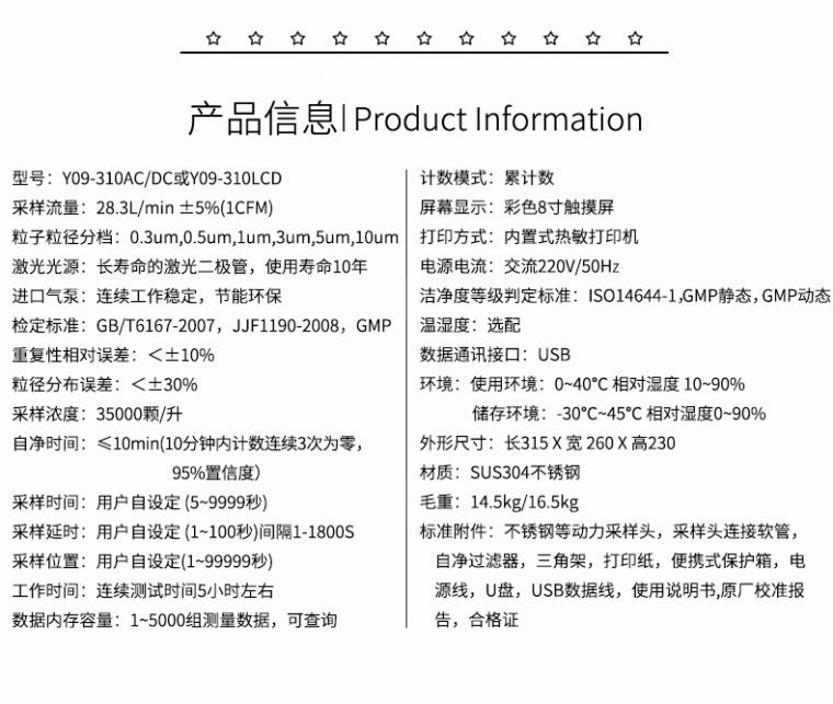 型号 | Y09-310 AC-DC型激光尘埃粒子计数器 |