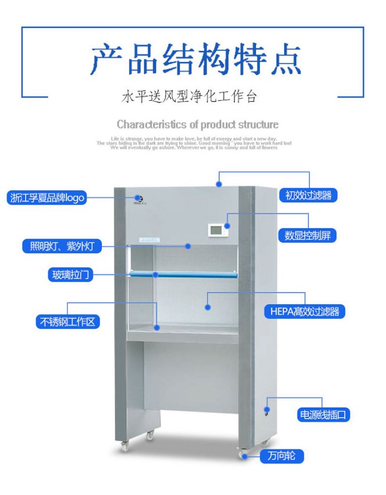 1、垂直流形,准闭合式玻璃风门,可有效防止外部气流透入,及操作异味对人体的刺激。