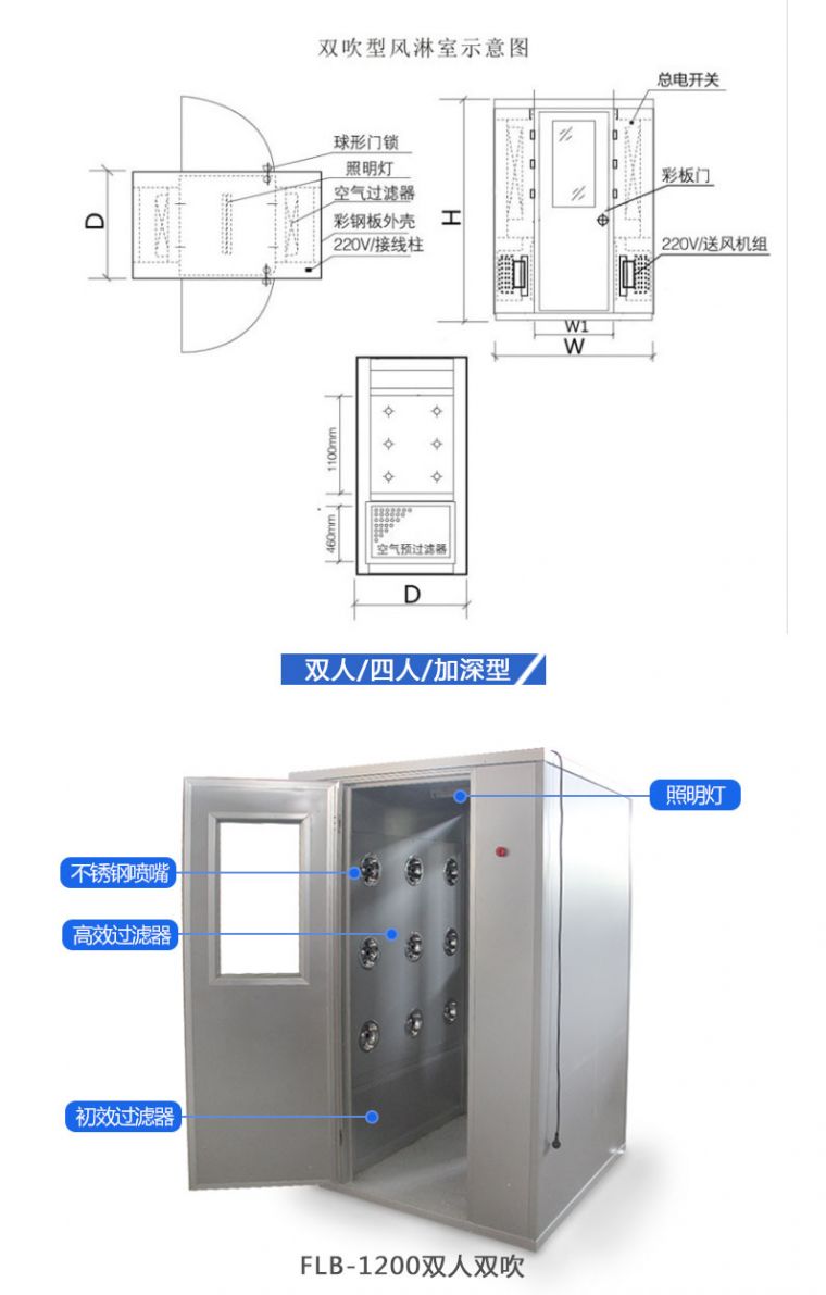 FLB-3600型加深双吹风淋室