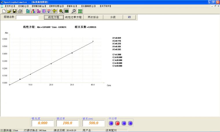 光度测试、定量测试、时间扫描、光谱扫描、数据处理