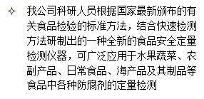 1 | 二氧化硫 | 1mg/kg | 1-800mg/kg | 适用于银耳(白木耳)、莲子、龙眼、荔枝、虾仁、米粉、豆芽、蜜饯、白糖、竹笋、蘑菇、粉丝、饼干、黄花菜、果脯等快速检测 |