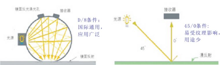 分光测色仪采用了国际上适用范围最广泛的D/8条件,适用于各行业配色和涂料、纺织、塑胶、食品、建材等行业的品质监控。并没有采用结构简单但用途极少的45/0条件。