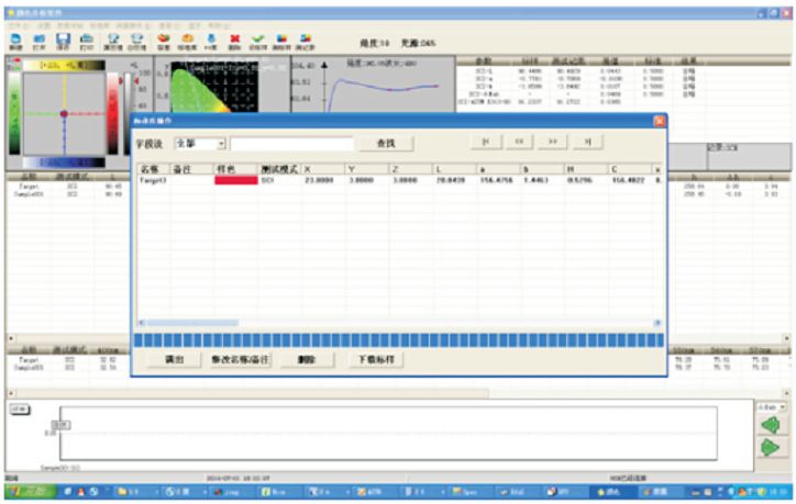 光谱数据,光谱图,色度值,色差值,合格/不合格,色彩仿真