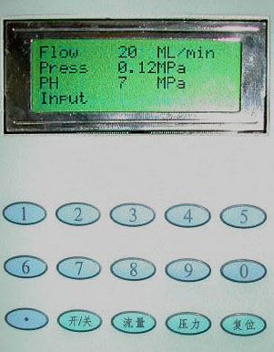 注:①流量设定的最大值为100ml.②压力的设定值最大值为8MPa,只能输入整数。