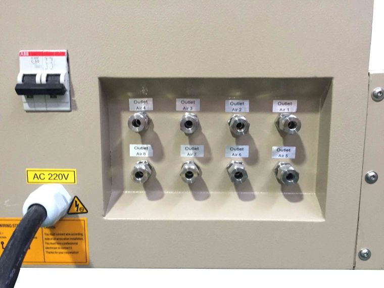 炉体结构 | 炉体由8个小管式炉组成,采用石英炉管,尺寸为20 OD x 17 ID x192 Lmm 每个加热模块都由独立的温控系统控制,最高温度可达1200℃ 快速密封法兰,炉体两侧分别有8个独立的进气口和8个独立的出气口,保证每个通道的样品都可在真空或气氛保护环境下进行热处理 可同时放入8个样品,在不同温度下进行热处理