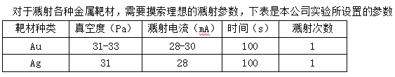 技术参数 | 1、输入电源:220VAC 50/60Hz 2、溅射电流:0-150 mA可调 3、功率:<2KW 4、输出电压:1600VDC(max) 5、溅射腔体 (1).采用石英腔体,尺寸:166mm OD x 150mm ID x 290mm H (2).密封:采用O形密封圈密封 6、溅射头&样品台 (1).二英寸带水冷的磁控溅射头(注意:水冷机不是标配)另有1英寸靶头可选 (2).一个直径50mm不锈钢样品台,样品台可旋转,旋转速率0-5 RPM (3).安装有一可手动操作的溅射挡板 (4).样品台和靶头之间的距离可以调节,调节范围:30-80mm (5).靶头支架,可以在非溅射状态放置溅射靶头 (6).溅射面积:4英寸(max) 7、控制面板 6" PLC集成触摸屏控制面板,可控制真空、电流、靶材位置和基片加热温度 8、真空系统 (1)安装有KF25真空接口 (2)数字真空压力表(Pa) (3)此系统运行需要Ar气,并且气瓶上安装有减压阀(设备中不包含) (4)采用机械泵 <1.0E-2 Torr (5)采用涡旋分子泵 <1.0E-5 Torr (6)可在本公司选购各种真空泵 9、进气 含一个控制进气的针阀和一个放气阀,本设备接气需要安装减压阀 10、靶材 (1)靶材尺寸要求:Φ50mmx(0.1-2.5) mm(厚度) (2)适合溅射Au,Ag,Cu,Al,Ti,等金属(可在我公司选购)