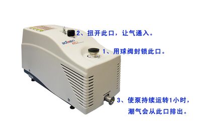 注意事项 | 每次使用后(尤其是抽湿气后),要进行排气,以排出水分。否则连续数次后可能导致叶片旋转不畅,而使泵不能正常工作或损坏。 排气操作如下图所示: |