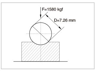 布氏硬度试验原理 试验力F=1580 kg,压头直径D=7.26 mm,F/D2值等于30。符合布氏硬度试验的相似性原理。 |