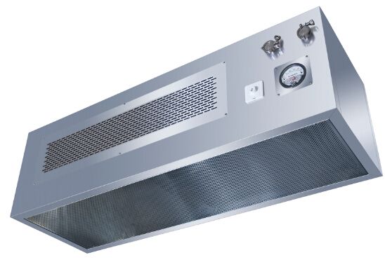 洁净层流罩是一种可提供局部洁净环境的空气净化单元,可灵活地安装在需要高洁净度的工艺点上方,洁净层流罩可以单个使用,也可多个组合成带状洁净区域。洁净层流罩是将空气以一定地风速通过高效过滤器后,形成均流层,使洁净空气流呈垂直单向流,从而保证工作区内达到工艺要求的洁净度,送入工作区。洁净层流罩有风机内装和风机外接两种,安装方式有悬挂式和落地支架式两种。可根据实际需求定制。