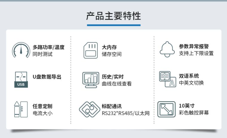 检测对象:电压、电流、温度、功率、频率、功率因数、电量;